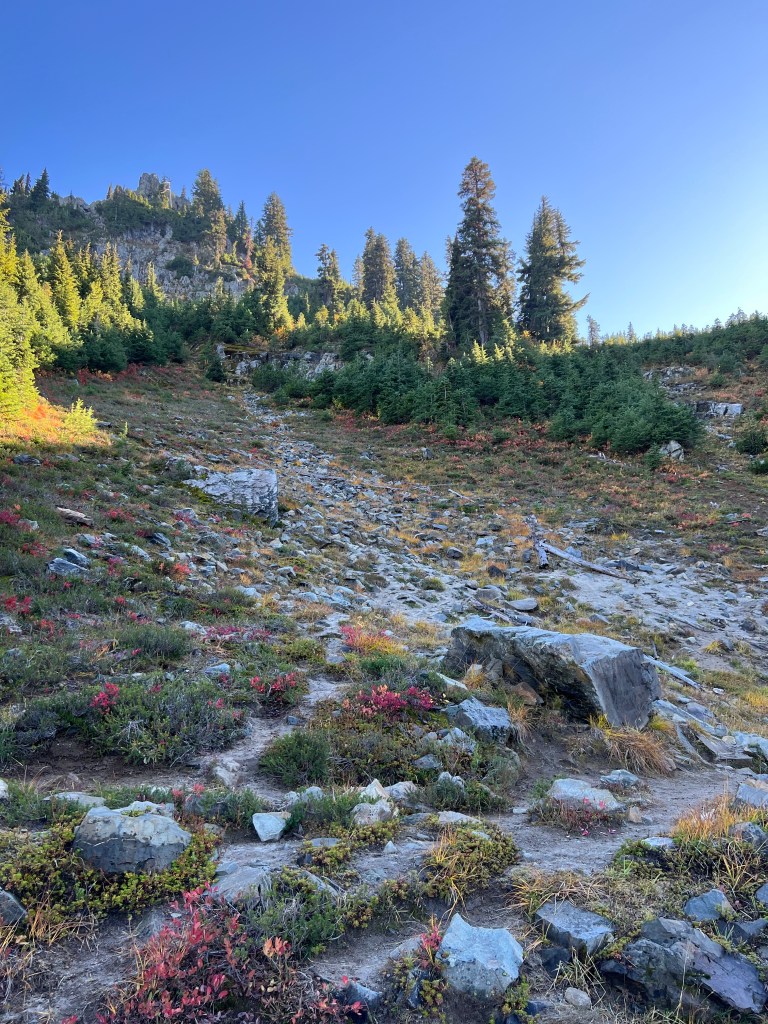 There is a hike in Mt Rainier National Park that makes me feel alive. The first time I hiked on this trail was as a sophomore in high school. I was in scouts and this was part of our first weeklong backpacking adventures. I loved it! Since then, I have traveled this fairly simple hike so many times I cannot even remember the tally. My wife and I had one our first “moments” here before we were married. I took my best friend here long ago to share my story after years apart. I have taken my kids here – my son and my daughter’s first hikes were on these trails. I’ve hiked it in the morning and late in the evening in multiple seasons. I’ve hiked it processing hard times and my greatest joy. It’s hard to put into words why this place moves me so. Maybe it would be helpful just to hike along with me…. It starts heading south on Chinook Pass on the Crest trail. Follow the pictures along as I took them hiking clockwise around Naches Peak.