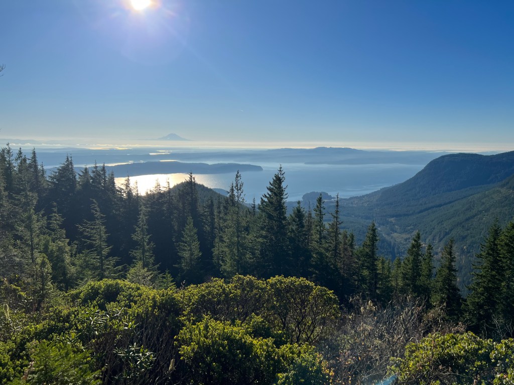 One of my favorite go-to hikes is a roughly 5 mile jaunt round trip up a small mountain on the Olympic Peninsula. It’s a moderately challenging climb, rising 2000 feet in just two miles. On top there are two vistas with very different views: the north side gives a nice view up into the East Olympic Mountains and the south side shows off the Hood Canal and Mt Rainier in the distance. The nice thing about this hike is that it is not too far away, sports an amazing forest to start the hike, and can be accomplished late into the fall and early into the spring given that the peak is under 3000 feet of elevation.