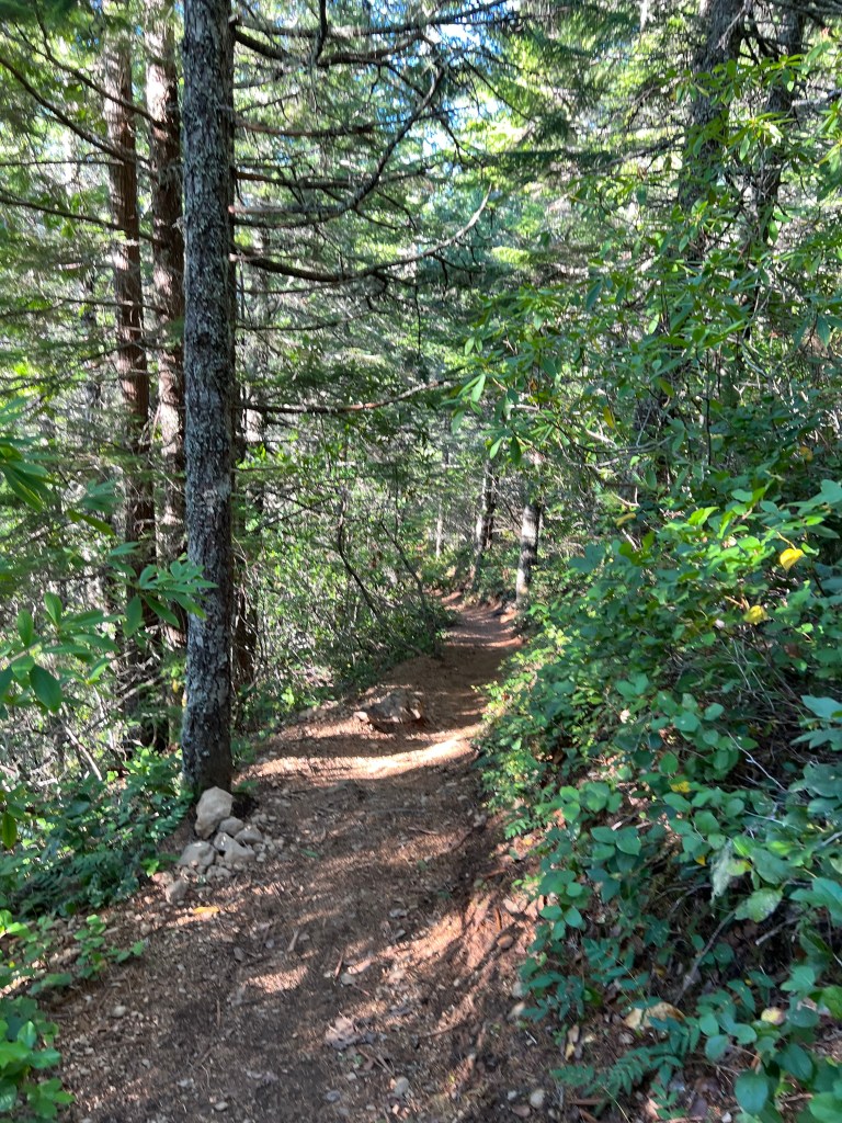 After my snack and hydrating, it’s time to head back down the mountain. I always find going down harder than going up due to the strain it places on the knees. For the last ten years, I have been so very grateful for my hiking poles! They help off load some of that pressure on the knees and certainly assist with balance as well. I always notice that the perspective going down is different than going up, so think of it as a whole new hike!
