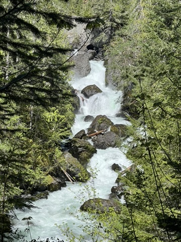 The trail is basically perfect for hiking and the grade is not steep. The woods and finally the camp seem like they are out of an elven paradise in Middle Earth. I would suggest hiking on the little detour around the wash out as it is much easier to navigate. The trail follows the Dosewallips River and the campground is right on it, allowing easy access to water the whole trip. The main feature to look forward to is the river flowing down a steep section with rapids and falls along the way: so amazing in the spring with significant volume moving through the small spaces.