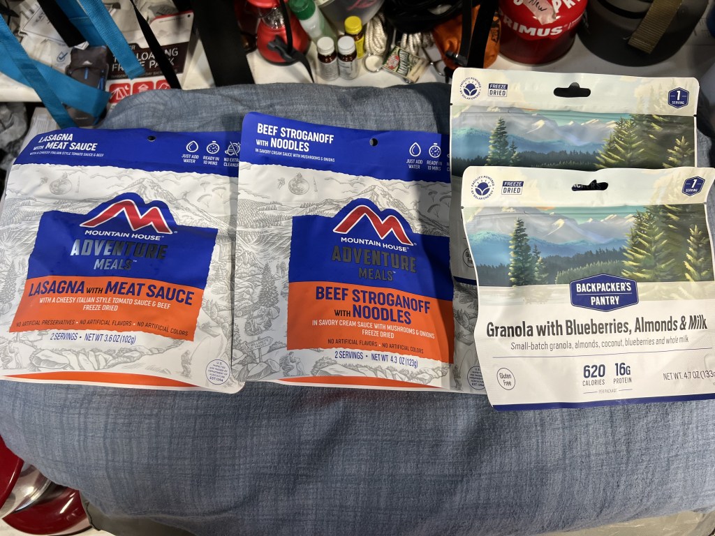 Our food choices turned out great! Enjoyed freeze dried dinner and breakfast. I fastened my Camelbak to the backpack for a nice combo! Worked well for easy water access, and then I had a day pack to use.