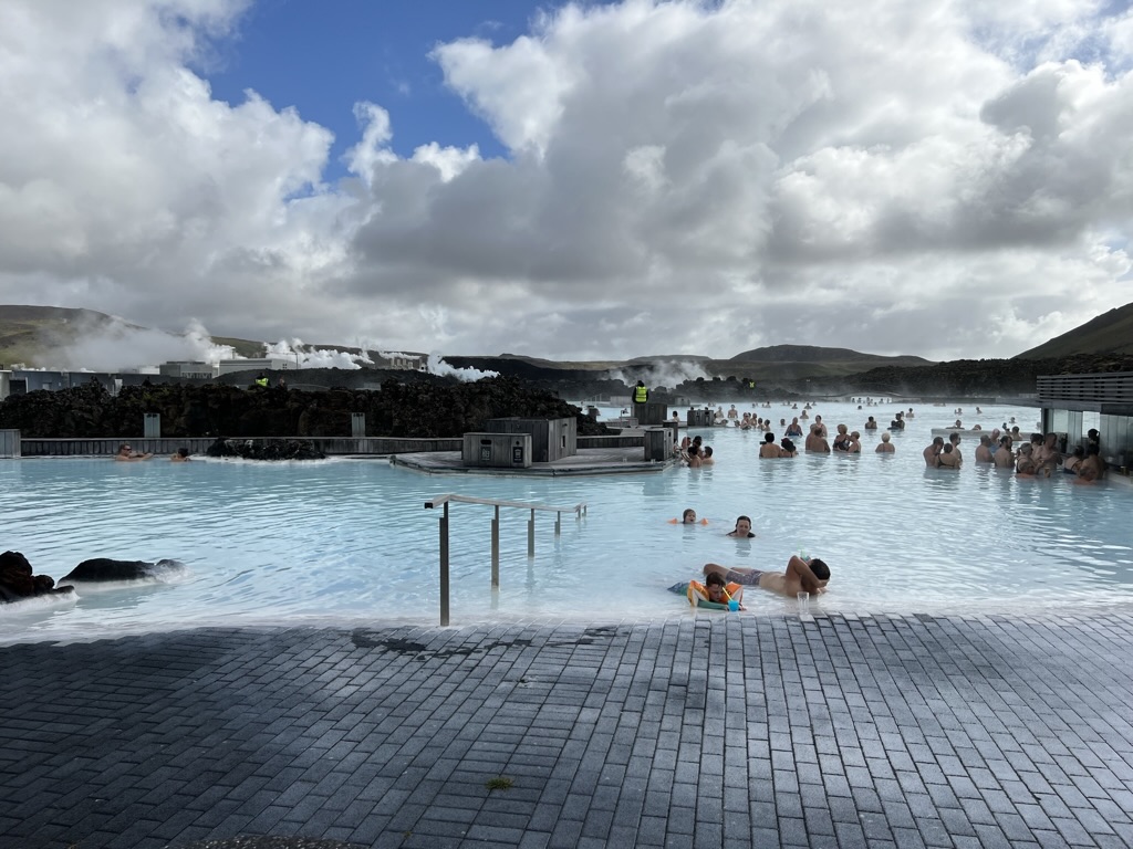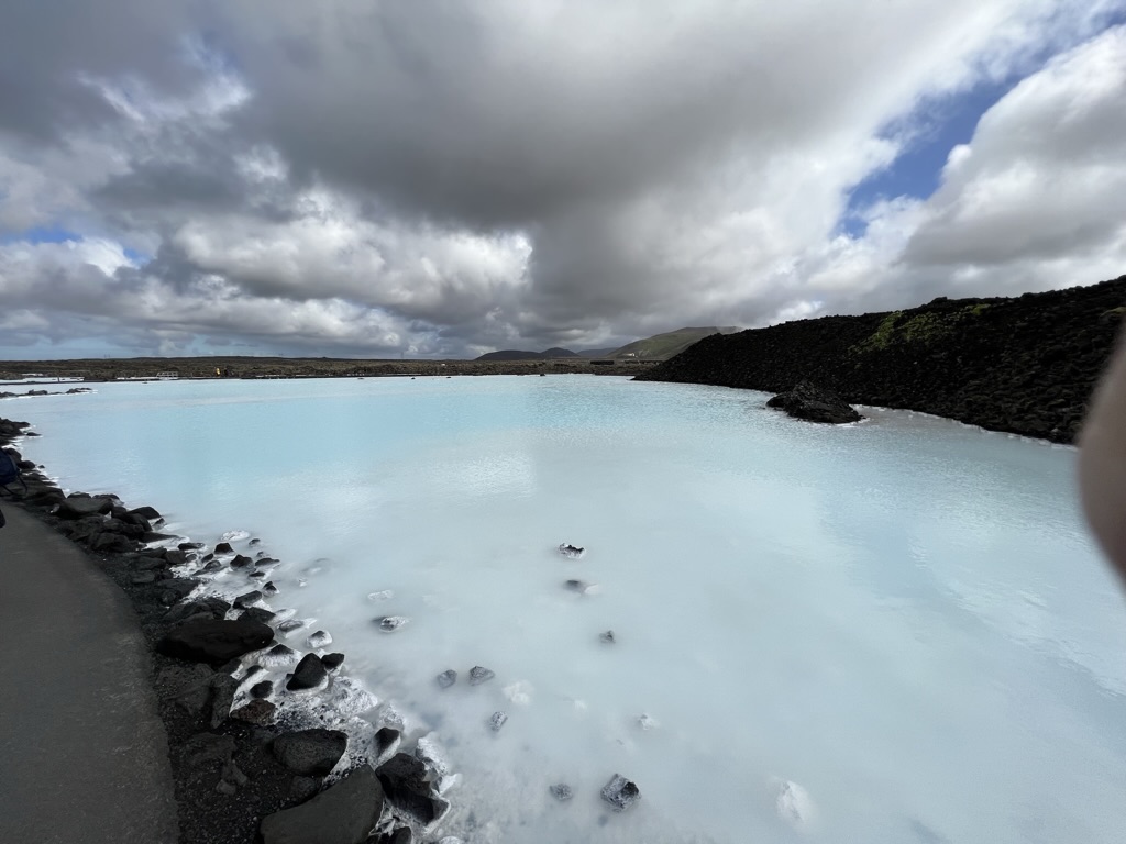 Next, I had to stop and take a look at the Blue Lagoon. This is the most famous tourist destination in Iceland and one of National Geographic’s top 25 Wonders of the World. I parked in the huge lot and walked past hundreds of cars to the resort. On the way, you get to see the public part of the lagoon.