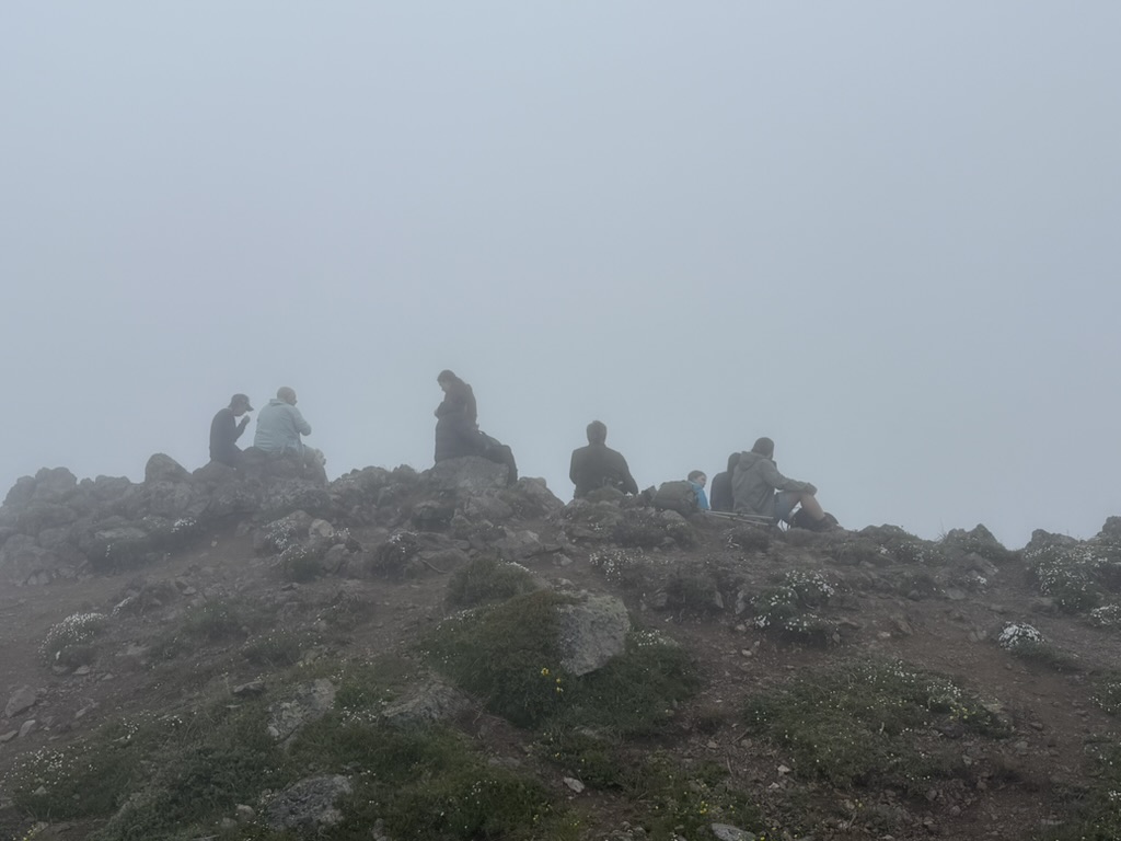 The clouds were just hanging out not too far above us, like a blanket over the valley below. Snow melt flows downhill and little waterfalls are prevalent giving a pleasant background soundtrack to the heavy breathing otherwise filling ones ears.