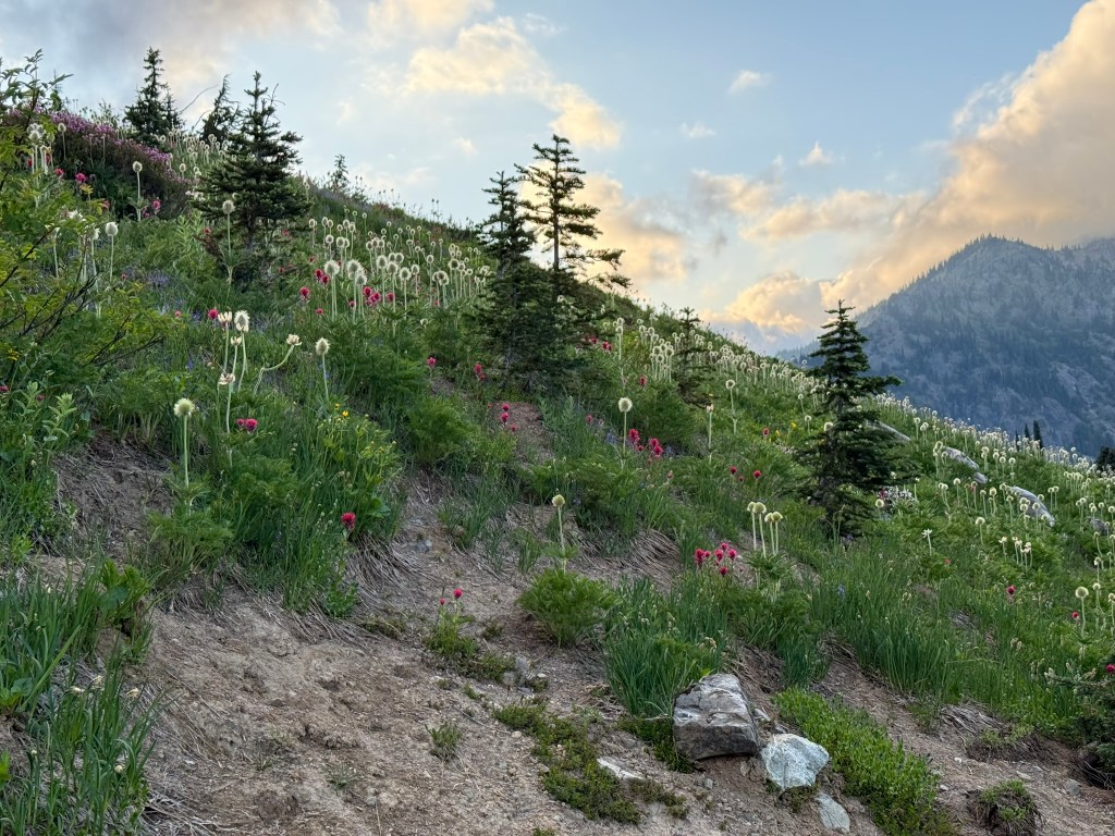 In a week or two, the flowers are going to be amazing on this slope to the west as you make your way north on the final third of the trail.